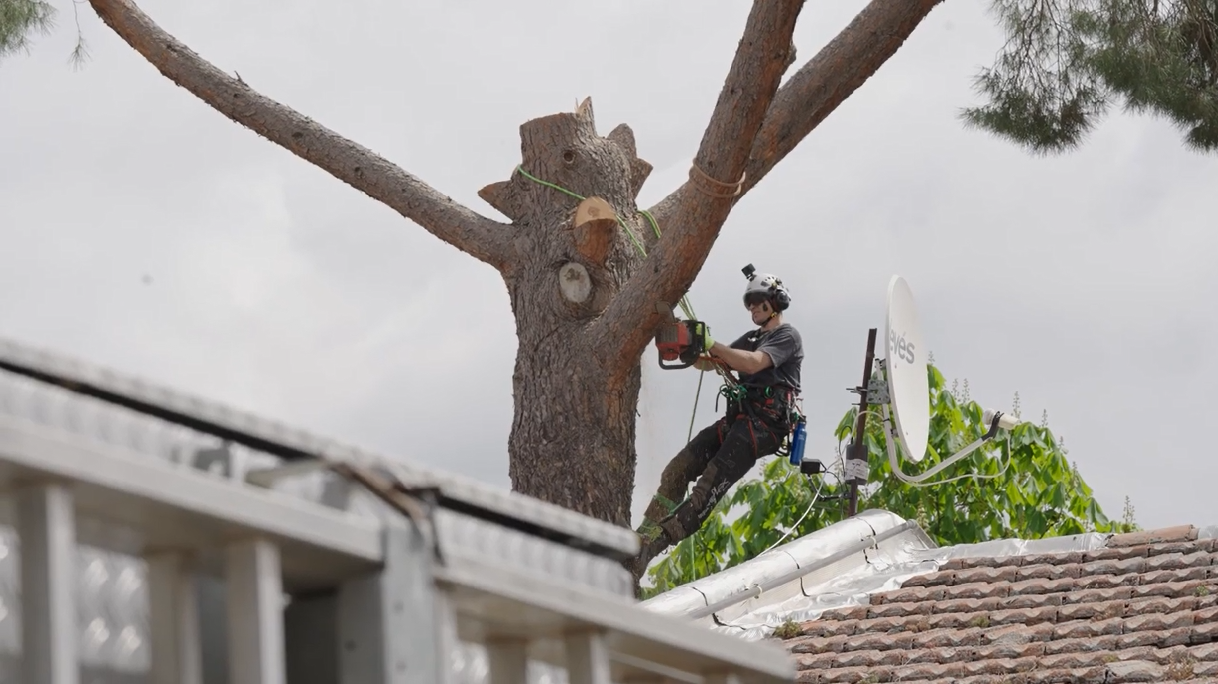 Jorge, owner of ARBÓREA was commissioned to undertake this complex task, and immediately recognised the challenge ahead. Seeing the extent of the tree’s growth and its awkward positioning, he knew he would need to deploy specialist tools to achieve success. He also took a number of careful steps to minimise disruption to the property and surrounding area. In his own words, “As an arborist, we all like challenging jobs and when I first saw it, I could see it was something different to tackle. I thought to myself, ‘I want to do this job’.”