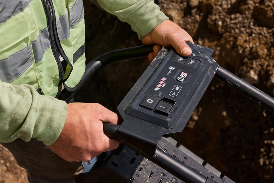 In addition to removing petrol headaches, the MX FUEL Rammer features a push button start and removes the need for engine maintenance and repair. For greater control and easier manoeuvrability, MILWAUKEE®’s centralised user interface provides a simple start/stop and fast/slow travel speeds. In addition, TipDetect technology enhances safety by automatically shutting off the rammer in case it tips over.