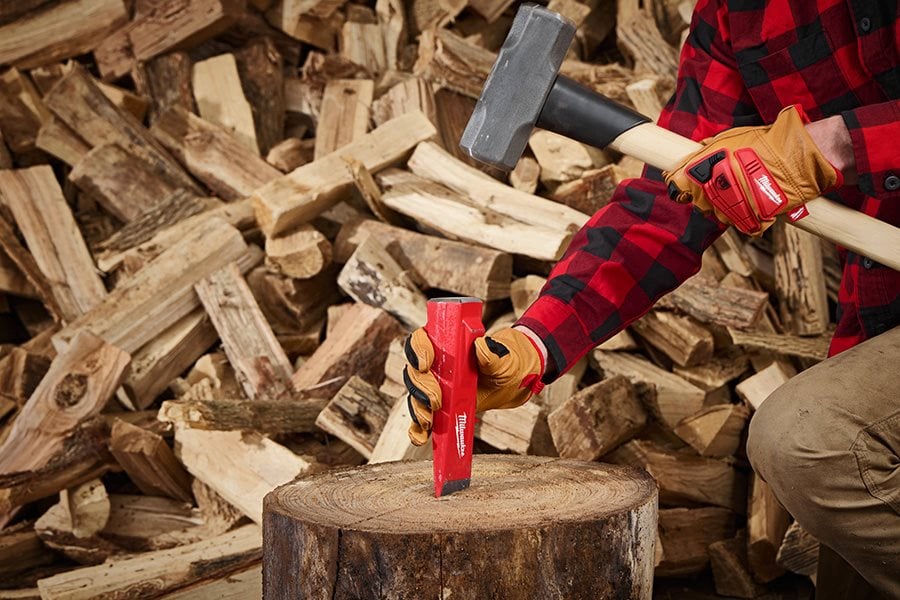 The MILWAUKEE® 3.6 kg splitting maul is the highly durable and provides the ultimate vibration reduction. SECURESTRIKE™ delivers the most secure handle connection and is designed to keep heads from dislodging in aggressive jobsite applications. The splitting maul also has the strongest handle, featuring steel-reinforced fibreglass to protect against overstrikes. The SHOCKSHIELD™ handle delivers the ultimate vibration reduction and reduces fatigue when striking wedges and splitting rounds.