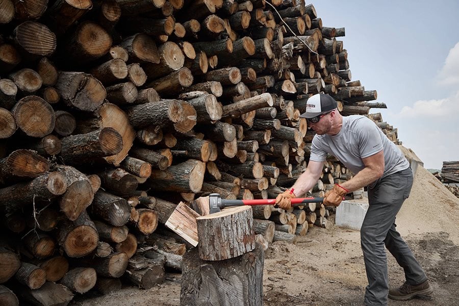 The MILWAUKEE® 90 cm splitting axe delivers the quickest splits. The axes precision-bevelled blade has the optimal sharpness to bite into wood and split efficiently. The lightweight handle provides balanced swings to split rounds all day long. Stainless steel overstrike protection prevents the handle from breaking or splintering during miss-strikes.