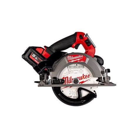 Kit Includes: (1) M18 FUEL 165 mm Deep Cut Circular Saw, (2) M18 HB5.5 Battery pack, (1) M12-18 FC Charger, (1) Kitbox, (1) Guide rail adapter
