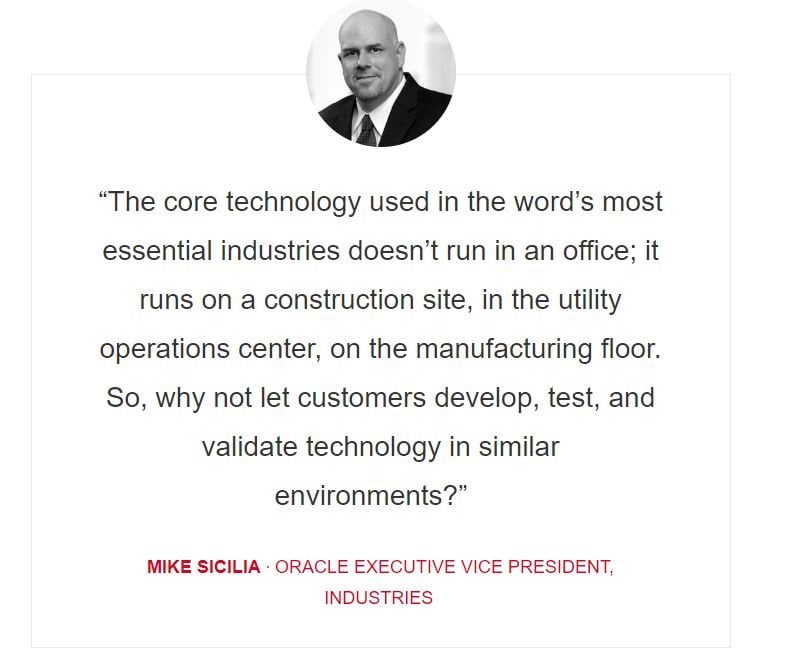 The company has joined the Oracle Industry Lab in its construction and engineering segment, a safe space where customers can immerse themselves, free from the hard sell, and experience for themselves the industry’s most cutting-edge tech through a hands-on, “simulated worksite demonstrating the power of the Internet of Things.”